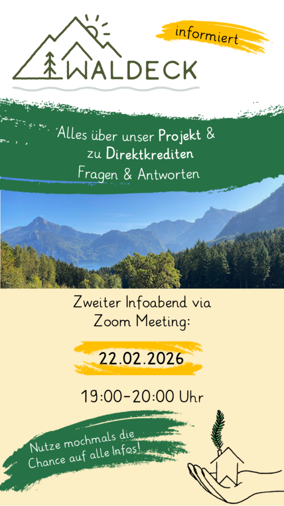 Nach einem erfolgreichen ersten Zoom-Meeting mit vielen interessierten, uns bekannten und neuen Personen freuen wir uns schon sehr auf unseren zweiten Infoabend! Es werden wieder viele Details zu unserem Projekt vorgestellt und unser Finanzierungsmodell erklärt. Im Anschluss ist genügend Zeit für alle Fragen.